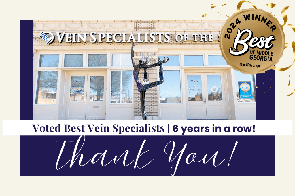 Thank you to our family, friends, & patients who voted us Middle Georgia’s Best Vein Specialist for the 6th year in a row! We are grateful to serve this community and to be a part of your journey to Better Veins for Life®.